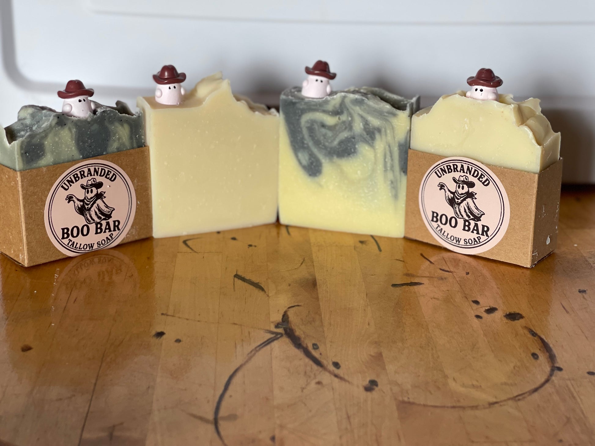 The Boo Bar is a little spooky, a little sweet, and all-natural through and through. Handcrafted with grass-fed tallow, olive oil, and coconut oil, this bar lathers rich and creamy, leaving skin clean and soft. The scent is a calm, comforting blend of chamomile, sandalwood, lime, amber, and a hint of mystery — warm, woodsy, and peaceful enough to soothe even the wildest soul.